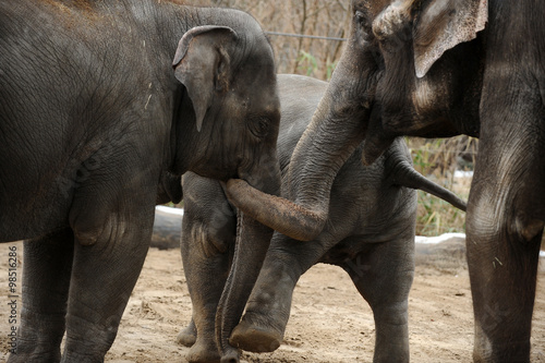 © Uzfoto, Fototapeta premium The three members of an elephant family