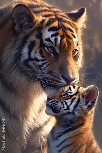 © 学习 电脑, Fototapeta premium The tiger and its child