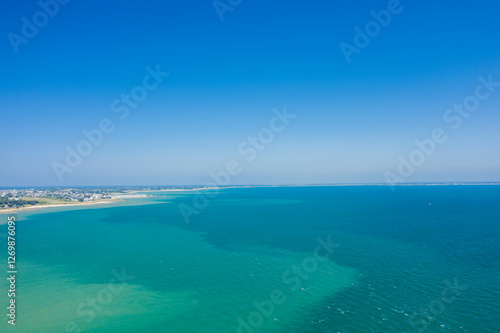 Obraz premium The tip of Conguel and the islet of Toul Bihan in Quiberon in Europe, France, Brittany, Morbihan, Quiberon, in summer, on a sunny day.