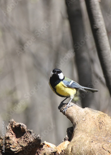 © vchphoto, Naklejka premium The titmouse sits on a stump