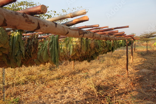 © Wanasanan, Fototapeta premium The tobacco plant (Nicotiana tabacum) is a hardy, herbaceous plant that belongs to the nightshade family, Solanaceae. It is cultivated primarily for its large, broad leaves, which contain nicotine