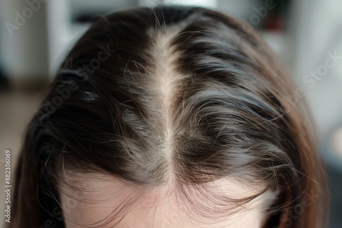 Naklejka premium The top view of slightly thinning hair showing some scalp, indicative of mild...