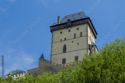 Fototapeta premium The tower of the old castle Karlstein in the forest