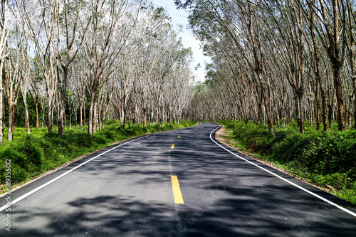 © WEERAKIAT, Fototapeta premium The track leaves the road with trees