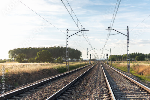 © Pablolivaresc, Fototapeta premium The tracks of a train on a sunny day in León (Spain)