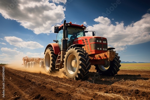© Attasit, Obraz premium The tractor drills grain at the field. agricultural activities