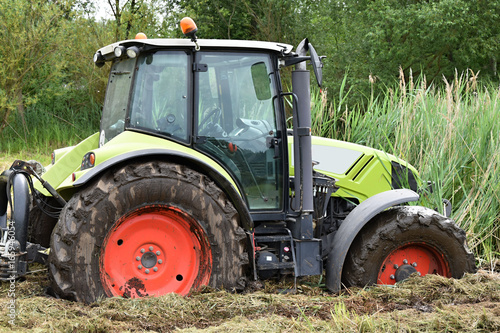 © faraonvideo, Fototapeta premium The tractor fell into the swamp.