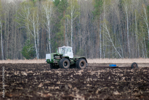 © Vladimir Ya, Fototapeta premium The tractor handles the soil. Spring field work.