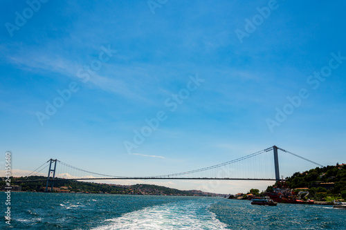 © MuamerO, Fototapeta premium The trail of the boat on the sea