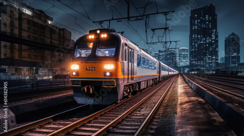 © EmmaStock, Naklejka premium The train in the city nightscape