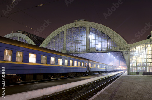 Fototapeta premium The train station at night in Lvov, Ukraine