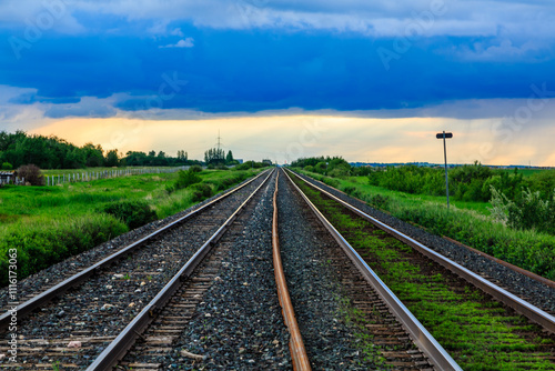 Fototapeta premium The train tracks are empty and the sky is cloudy