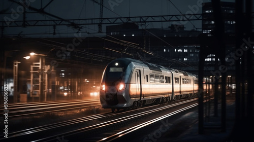 © Daniel, Fototapeta premium The train travels at night. Generative AI
