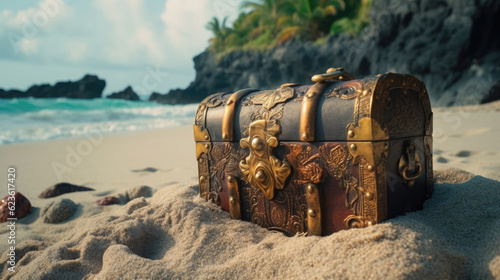 © redflower, Fototapeta premium The treasure chest on the beach with sunlight