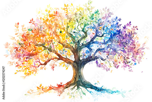 Fototapeta premium The tree of life in colorful spring watercolor painting isolated on a white background