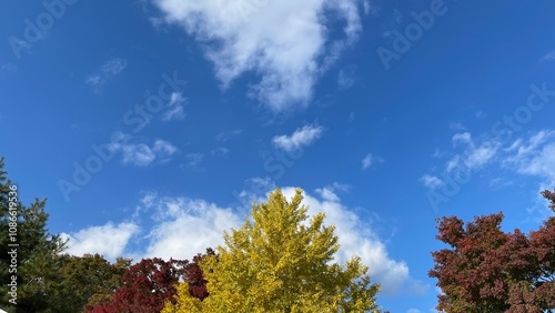© Ultra Tama, Naklejka premium The trees leaves on the mountains were starting to change color.