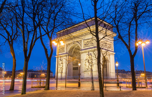 Naklejka premium The Triumphal Arch at night Paris, France