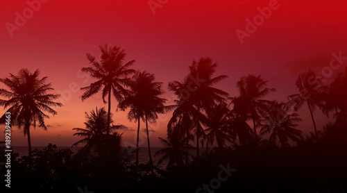 Obraz premium The Tropical palm trees with red sky sunset silhouette in Summer background