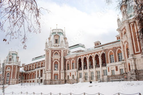 Obraz premium The Tsaritsyno Museum in the city. The business card of Moscow. A beautiful...