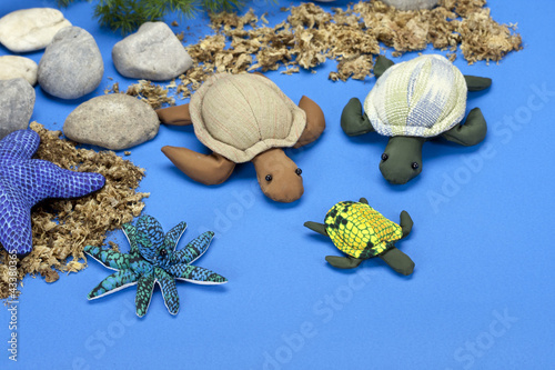 © toa555, Obraz premium The turtles dolls family, made of cloth