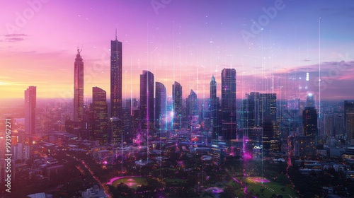 © SKV, Fototapeta premium The Urban Skyline at Sunset