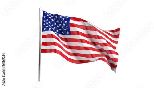 Fototapeta premium The USA flag isolated on a white background, showcasing its vibrant red, white, and blue colors