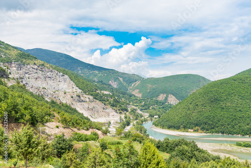 © Gestur, Fototapeta premium The Valbona river flows into lake Kamoni in Albania