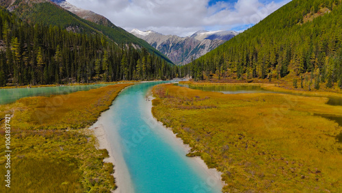 Fototapeta premium the valley of the mountain river Shavla in Altai autumn