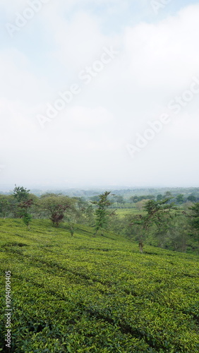 © Zalfa R, Fototapeta premium The vast expanse of tea gardens in the Malang area in the afternoon