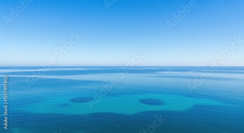 © thiago, Fototapeta premium The vast expanse of the tranquil ocean merges with a bright blue sky.