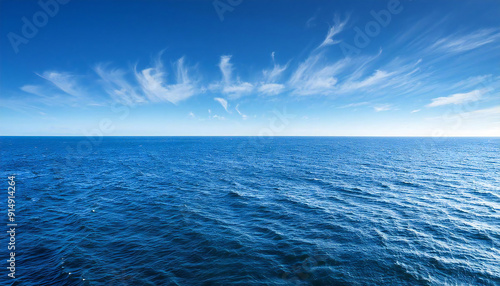 © seven sheep, Fototapeta premium 広い海。大海原。水平線と青空。The vast sea. The ocean. The horizon and the blue sky.