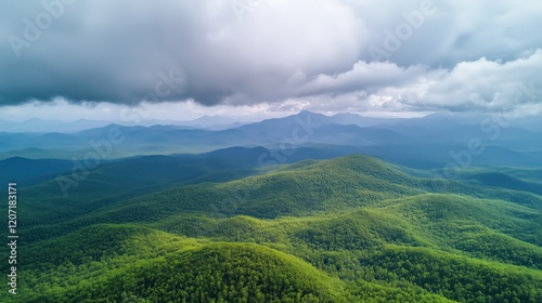 Fototapeta premium The verdant mountains stretch endlessly, their vibrant hues contrasting...