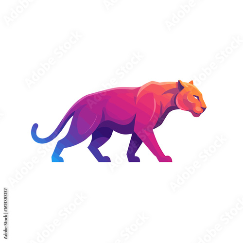 © dwi, Obraz premium The Vibrant Cat: An illustration of a big cat in a modern and colorful style, creating a visual appeal for modern audiences.