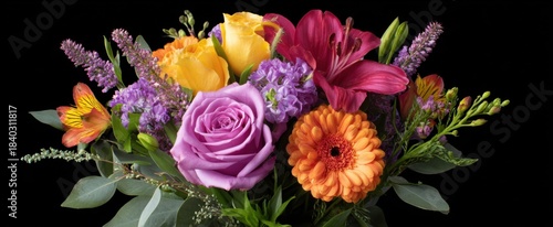 © ckybe, Fototapeta premium The vibrant colorful international womens day flower bouquet gift features lush fresh seasonal blooms and greenery
