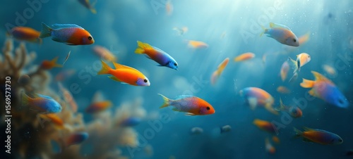 Naklejka premium The Vibrant School of Fish Swimming in a Coral Reef Scene
