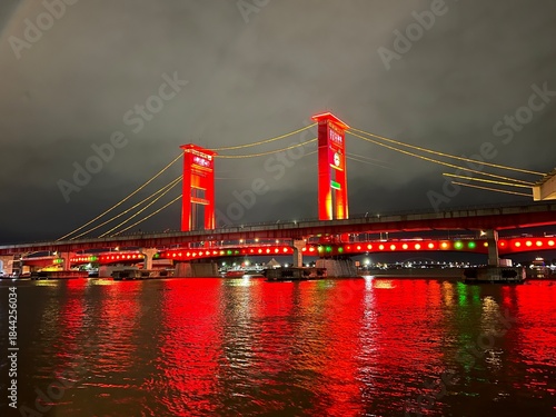 Fototapeta premium The view at night on the Ampera Bridge in Palembang, South Sumatra, Indonesia