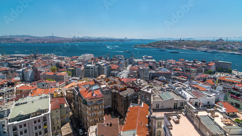 Fototapeta premium The view from Galata Tower to Galata Bridge timelapse Golden Horn, Istanbul, Turkey
