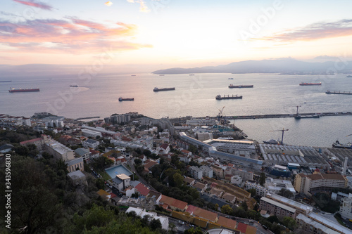 © Olena, Fototapeta premium The view from Gibraltar Rock to Gibraltar Bay and Spanish city Algericas