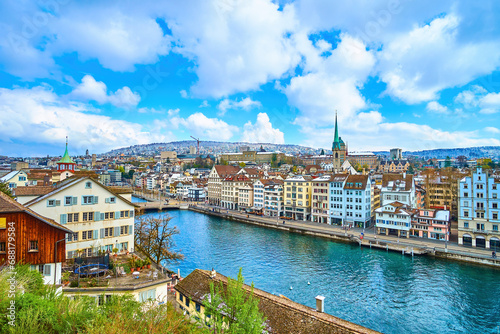 Naklejka premium The view from Lindenhof Hill on historic Niederdorf neighborhood, Zurich,...