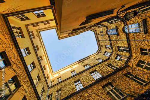 Obraz premium The view from the bottom at the courtyard Wroclaw,