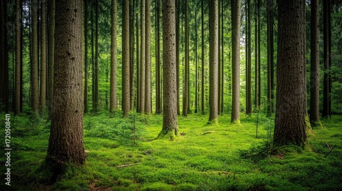 © Suradiman, Obraz premium the view inside the forest is decorated with sunlight and trees