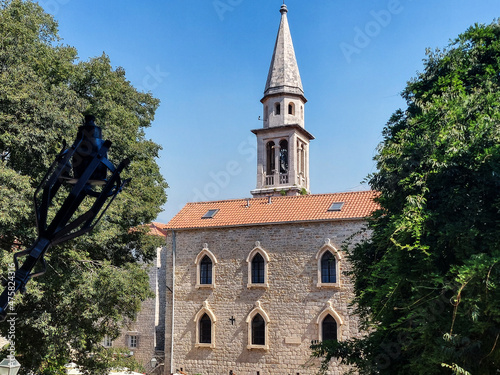 Naklejka premium The view of Budva medieval fortress of St. Mary, Citadel, landscape of Old...