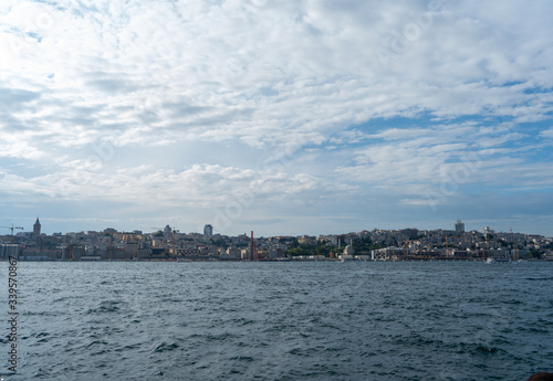 Naklejka premium The view of the Bosphorus strait in Istanbul, Turkey. European side of the...