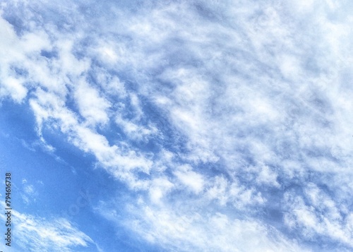 © Arthas, Obraz premium The view of white cirrus clouds against a bright blue sky background.