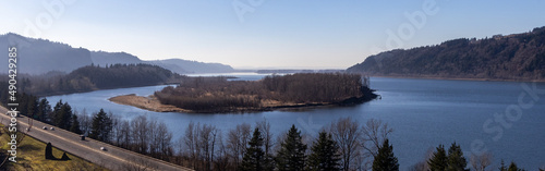 Fototapeta premium The view to the West looking down the Columbia River Gorge in Oregon.