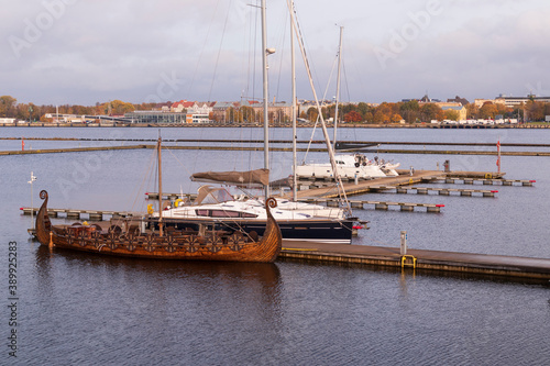 © Armands photography, Fototapeta premium The Viking boat is moored at the marina