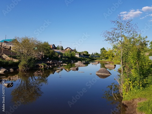 Fototapeta premium The village is reflected in the river