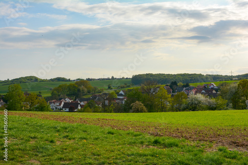 © Claudia Evans , Obraz premium The village of Krombach in Lower Franconia is embedded in the landscape