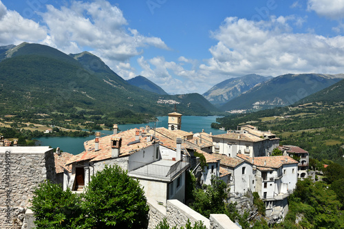 Obraz premium The village on Lake Barrea in Abruzzo, Italy
