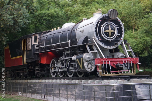 © AshBhatt, Naklejka premium the Vintage Steam rail engine situated in a public park for show